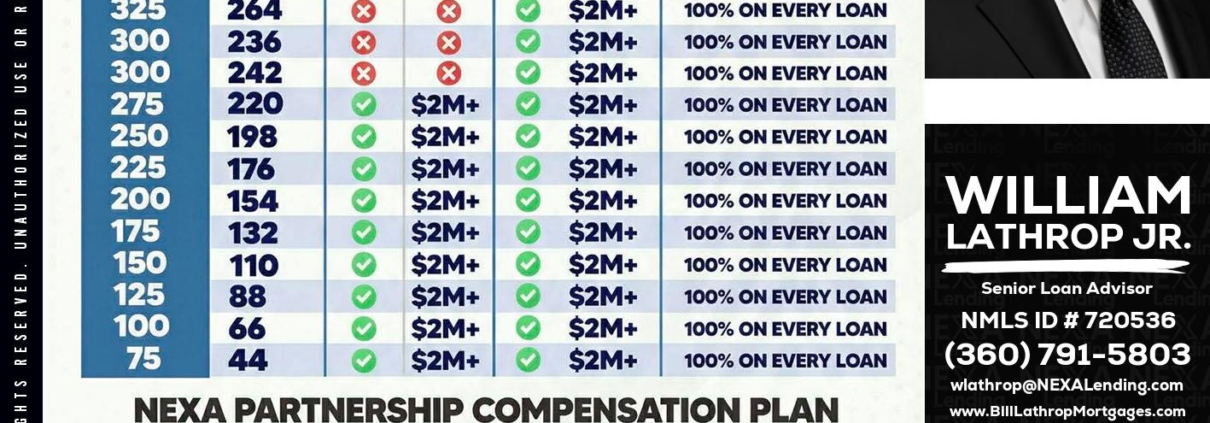 Hi, my name is Bill Lathrop. I’m a Loan Officer with NEXA Lending LLC., offering personalized mortgage solutions, fast customized quotes, great rates and service with integrity.