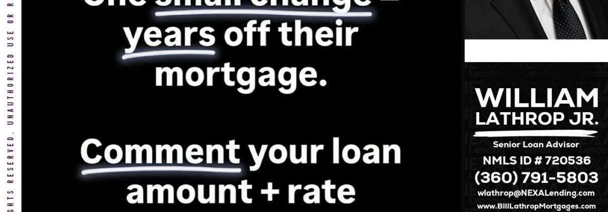Hi, my name is Bill Lathrop. I’m a Loan Officer with NEXA Lending LLC., offering personalized mortgage solutions, fast customized quotes, great rates and service with integrity.