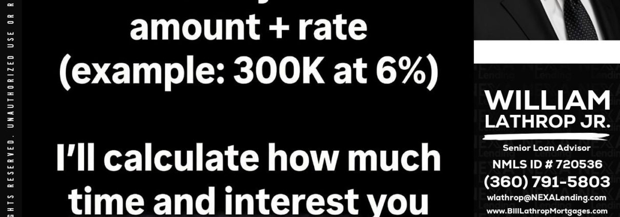 most owners - Bill Lathrop -Senior Loan AdvisorHi, my name is Bill Lathrop. I’m a Loan Officer with NEXA Lending LLC., offering personalized mortgage solutions, fast customized quotes, great rates and service with integrity.