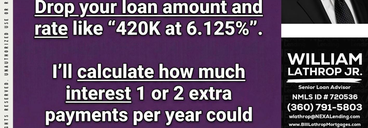 Hi, my name is Bill Lathrop. I’m a Loan Officer with NEXA Lending LLC., offering personalized mortgage solutions, fast customized quotes, great rates and service with integrity.