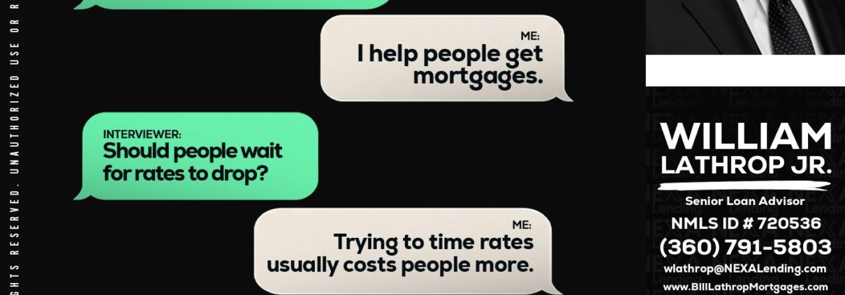 Hi, my name is Bill Lathrop. I’m a Loan Officer with NEXA Lending LLC., offering personalized mortgage solutions, fast customized quotes, great rates and service with integrity.