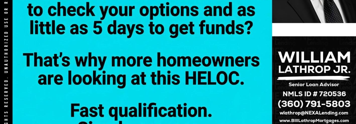 Hi, my name is Bill Lathrop. I’m a Loan Officer with NEXA Lending LLC., offering personalized mortgage solutions, fast customized quotes, great rates and service with integrity.